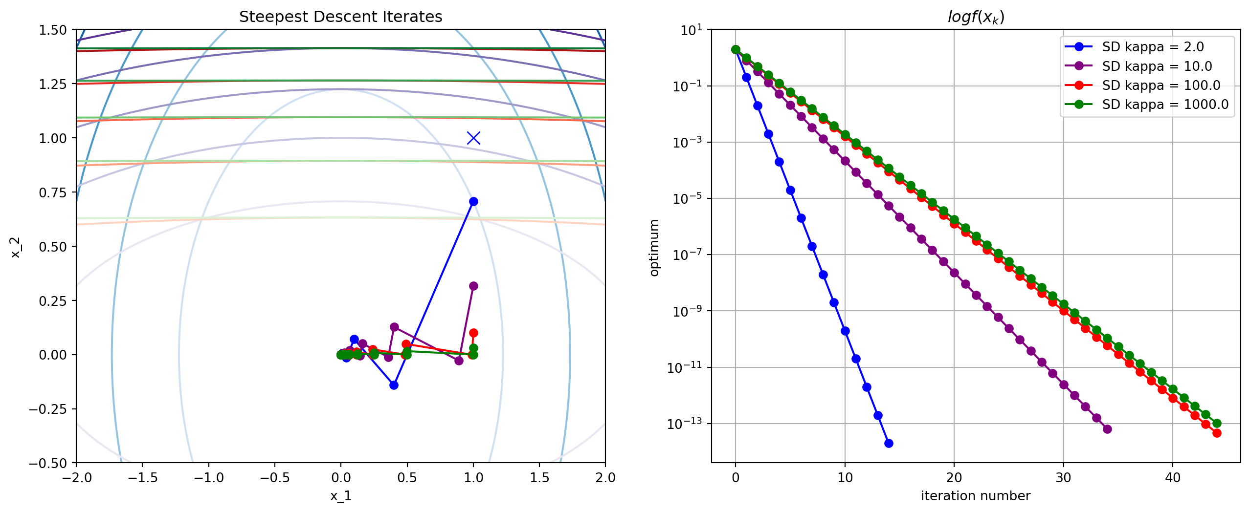 The convergence rate measures how fast the error in the solution decreases. The error can be in terms of the optimum , the optimal value , or .