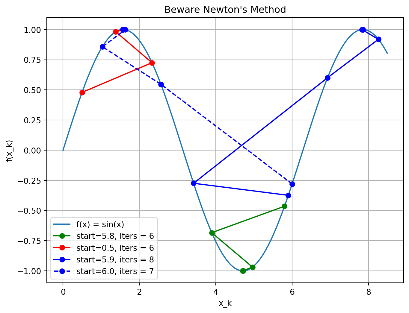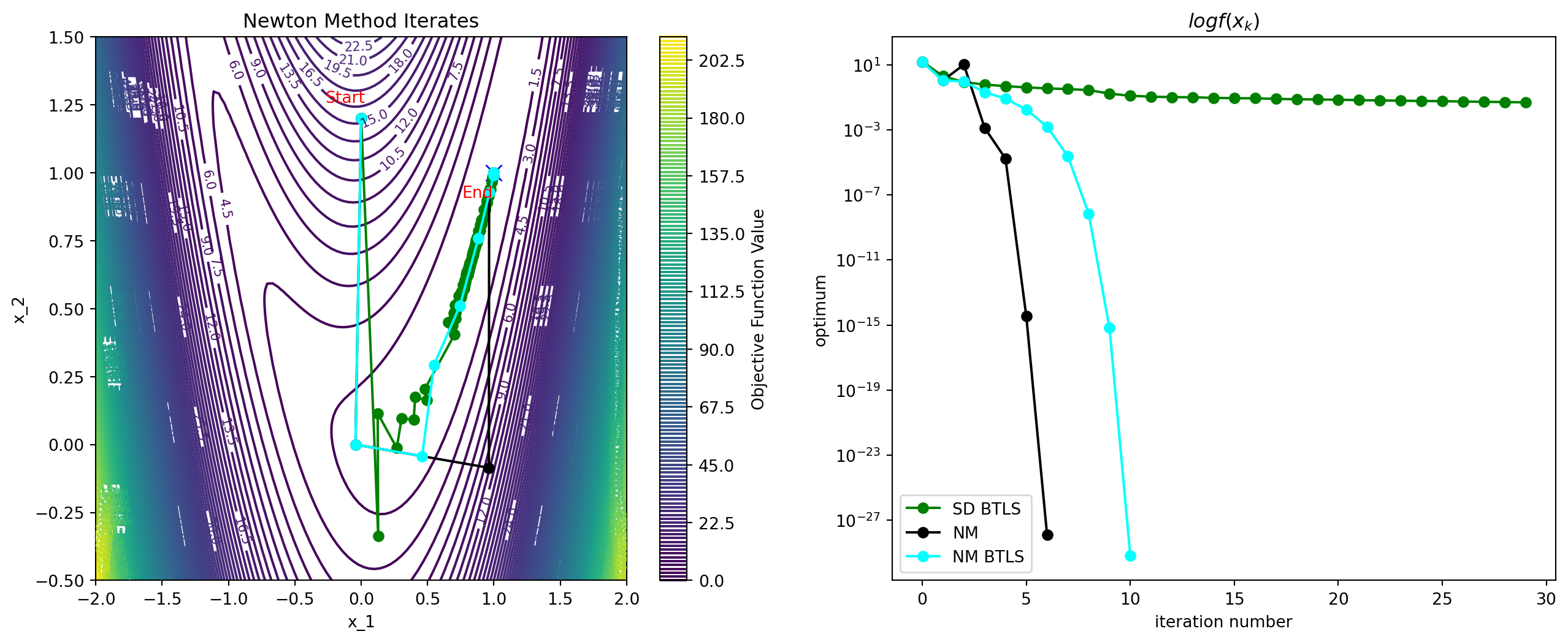 Although Newton’s method is very attractive in terms of its convergence properties the solution, it requires modification before it can be used at points that are far from the solution.