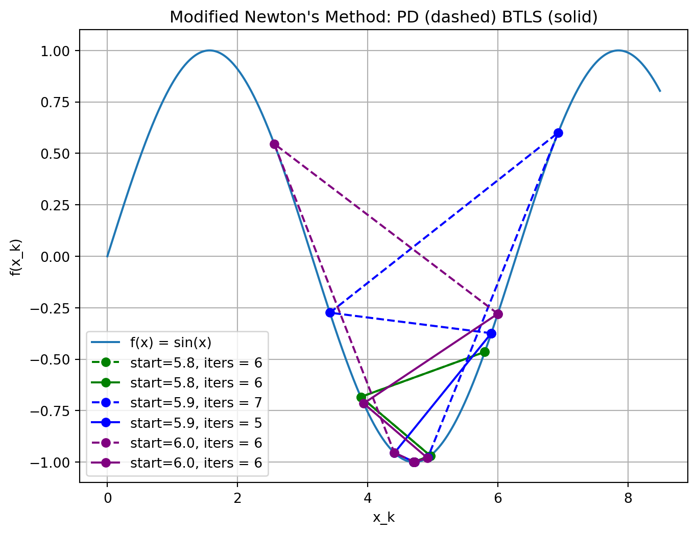 In practice, Newton’s method must be modified to accommodate the possible non-positive definiteness of at regions far from the solution.