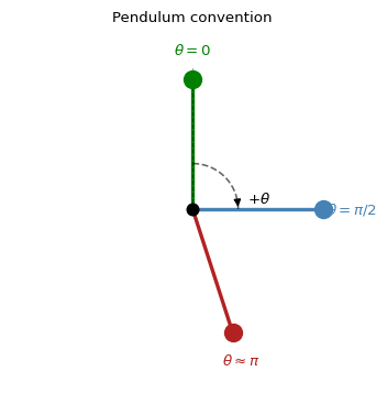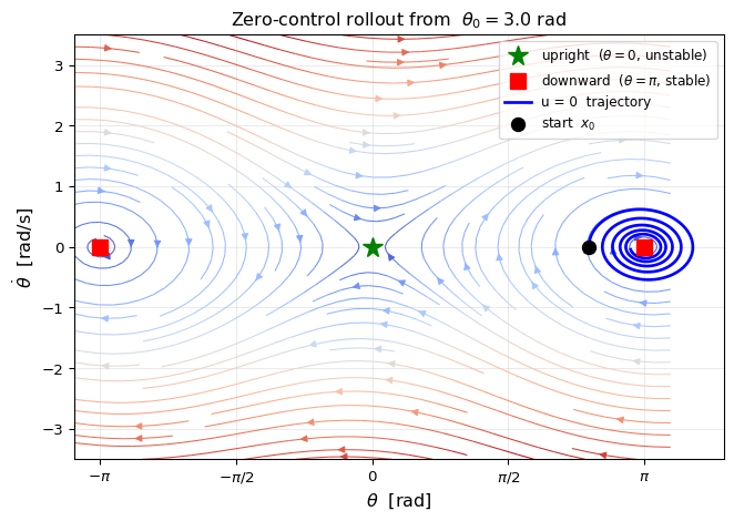 Takeaway: without control, the pendulum settles at (hanging). Reaching (upright) requires active control — even to stay there.